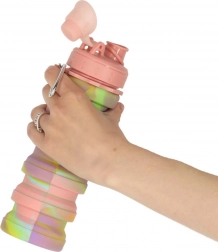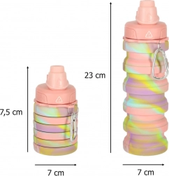 Diese Sportflasche ist ein großartiger Begleiter für Ihren aktiven Lebensstil. Sie verfügt über ein einstellbares Volumen dank der faltbaren Konstruktion, die ein Befüllen von 250 ml bis 500 ml ermöglicht. Sie hat eine verschließbare Tülle, die ein bequemes Trinken ohne Verschütten gewährleistet, und ihr attraktives Design in Kombination von Rosa, Gelb und Violett motiviert Sie, Ihr Trinkverhalten beizubehalten.