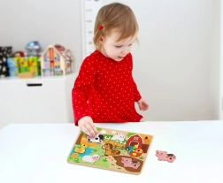Tauchen Sie ein in einen schönen, entspannten Tag auf dem Bauernhof mit unserem Einlegepuzzle. Das Produkt besteht aus einer Basis und sieben abnehmbaren Teilen, was den Kindern ermöglicht, ihre sensorischen Fähigkeiten und die Feinmotorik zu üben. Kinder lernen Geduld, während sie die Vielfalt der tierischen Freunde entdecken.