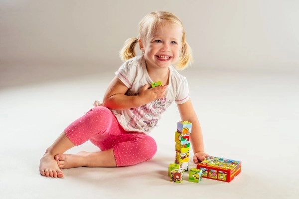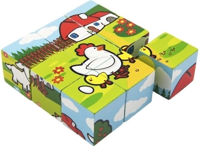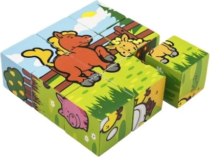 Diese Holzwürfel bieten Kindern Spaß beim Zusammensetzen verschiedener Bilder aus dem häuslichen Umfeld. Jedes Set enthält sechs verschiedene Tiermotive, die Kinder entdecken können.