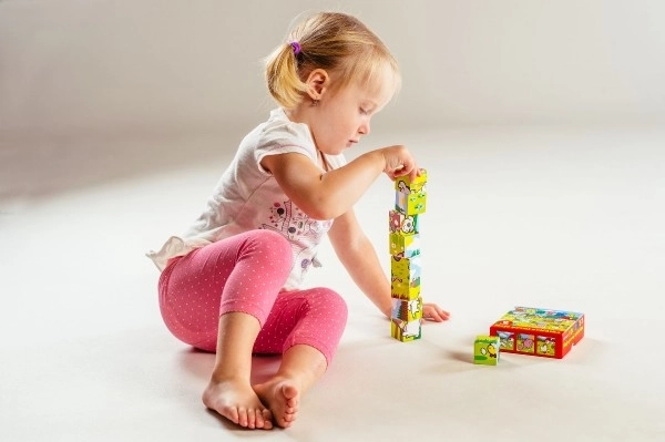 Das Spiel mit den Würfeln fördert außerdem das Verständnis von Balance beim Stapeln von Türmen und das Verständnis von Ursache und Wirkung beim Umstoßen.