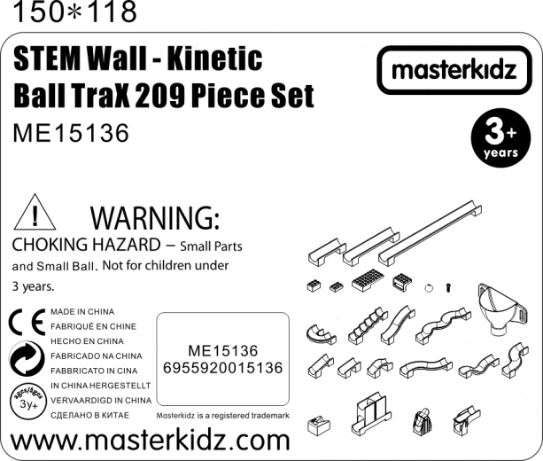 Dieser Masterkidz-Baukasten ist ideal zum Bau von Kugelbahnen auf der STEM Tafel. Mit 209 Teilen können Kinder verschiedene Bahnen und Wege gestalten, indem sie Würfel, Richtungswechsler und weitere bewegliche Mechanismen hinzufügen.