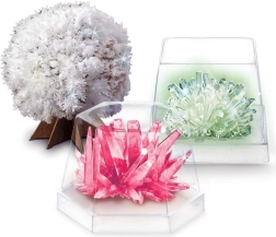 Verfolgt den Kristallisationsprozess vom ersten Einfüllen der Lösung bis zu den fertigen Strukturen. Lehrreich, visuell attraktiv und ideal zur Präsentation auf dem Ständer.