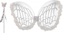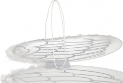 Weiße Flügel mit einem federigen Rand und silbernen Adern sind optisch auffällig und dank elastischer Träger zugleich angenehm zu tragen.