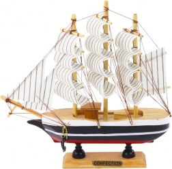 Dieses kompakte dreimastige Modell ist eine elegante Replik eines klassischen Schiffes mit kontrastierendem Design in Schwarz, Weiß und Rot. Seine charakteristischen Segel mit dünnen Streifen und realistische Takelage, zusammen mit der dreimastigen Konstruktion, machen es ideal zum Aufstellen.