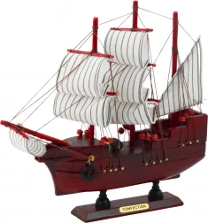 Dieses elegante dekorative Modell eines Dreimasters in der Farbe Burgunderrot ist die perfekte Ergänzung für jedes Interieur. Seine Details und die einfarbige Konstruktion ziehen die Aufmerksamkeit auf sich und verleihen ihm einen historischen Touch.