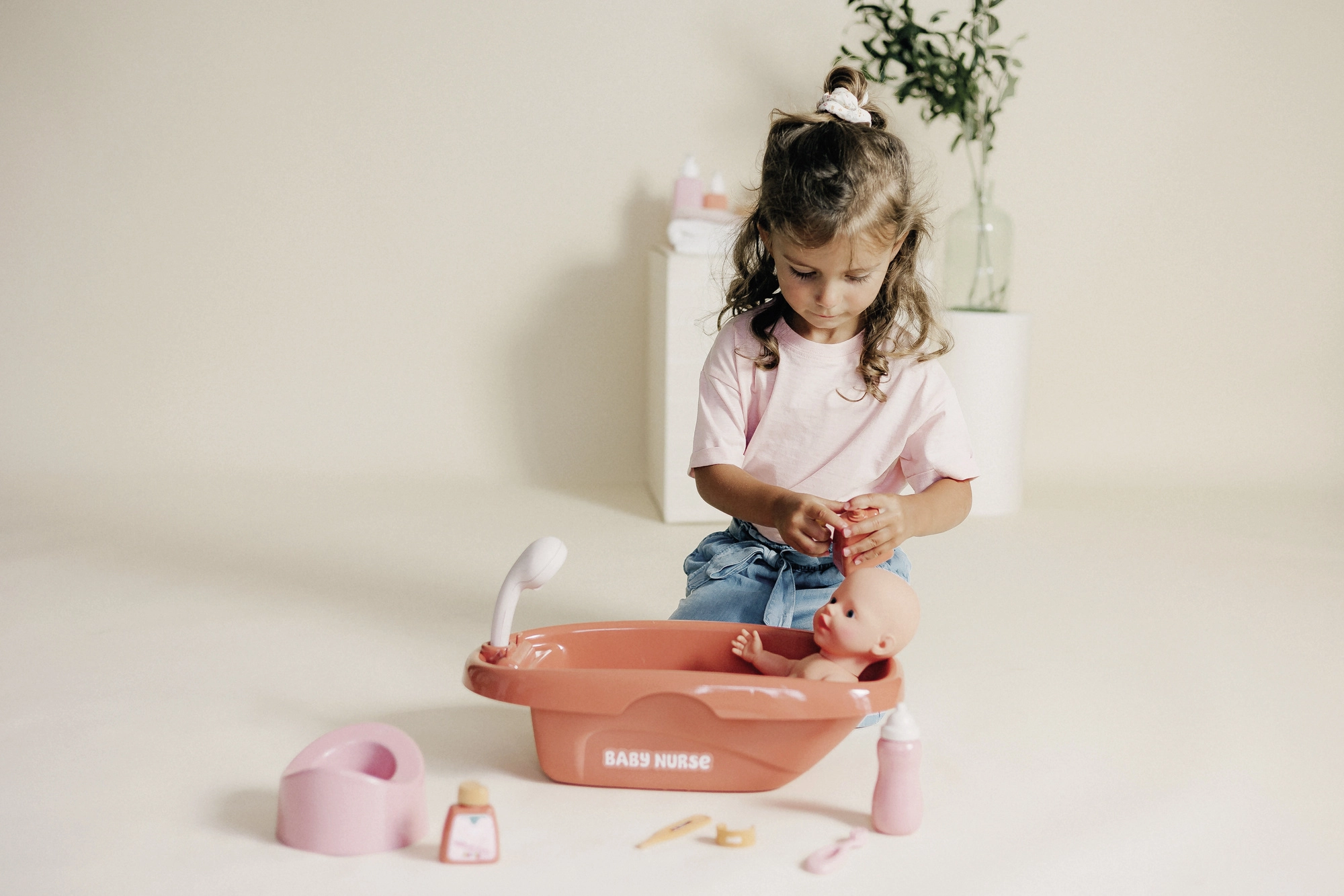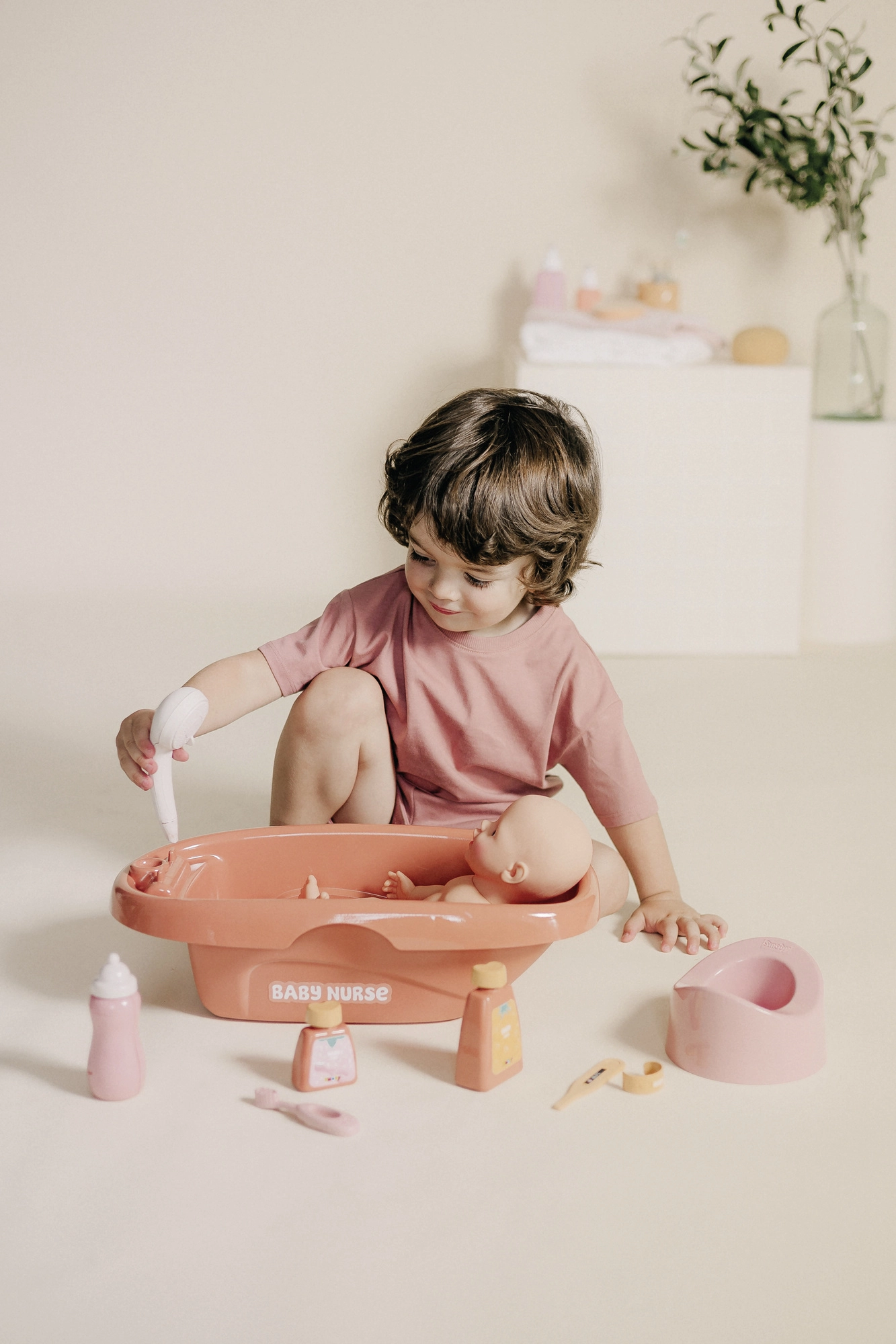 Die SMOBY BABY NURSE Puppenbadewanne ist ein tolles Set für kleine Pflegehelden. Sie bietet eine geräumige Wanne mit integriertem Wasserhahn und einer abnehmbaren Handdusche mit mechanischer Drehfunktion, wodurch das Puppenbad besonders realistisch wirkt. Nach dem Baden können Kinder die Puppe mit dem Fläschchen füttern und sich um die tägliche Hygiene kümmern.