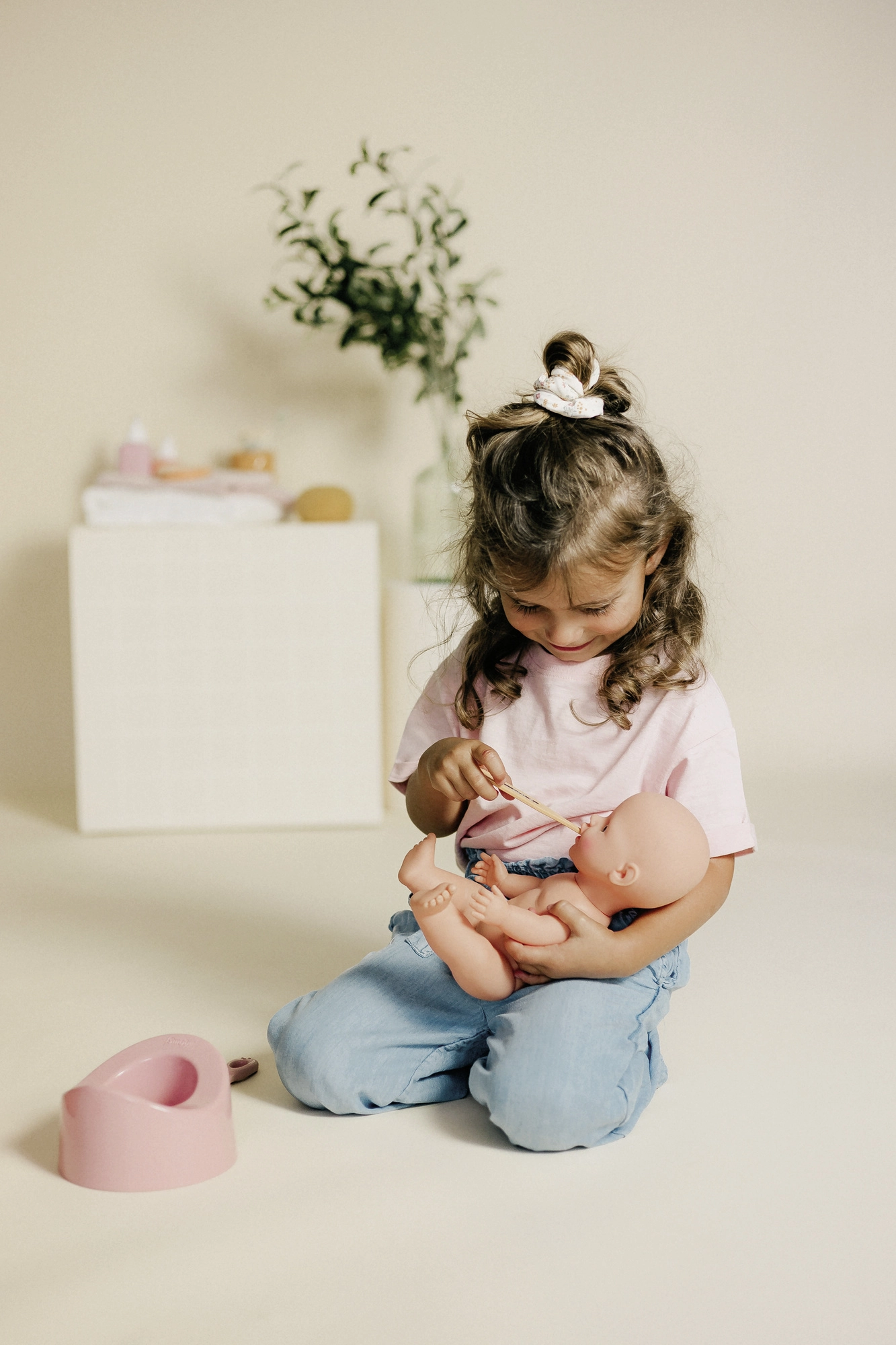 Im Set enthalten ist eine breite Auswahl an Zubehör: Töpfchen, Thermometer, Zahnbürste, Fläschchen und weiteres Pflegezubehör, das Kinder leicht greifen können. Das Set wird in Frankreich produziert und nutzt recycelte Materialien (76 %) – eine umweltfreundliche Wahl. Geeignet für Puppen bis 42 cm.