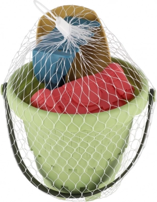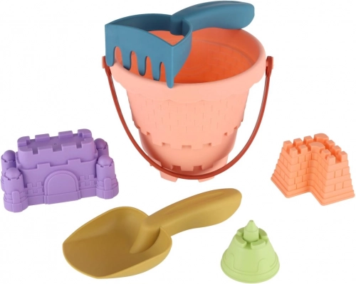 Dieses vielseitige Sandspielset bietet alles, was Kinder für Spaß im Sandkasten oder am Meer brauchen. Ein Eimer mit praktischem Henkel, eine handliche Schaufel, eine Harke und drei Förmchen ermöglichen einfaches Schaufeln, Formen und Bauen von Sandburgen.