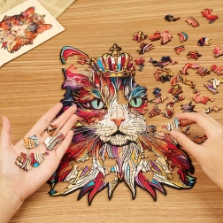 Tauchen Sie ein in die Welt des künstlerischen Zusammensetzens mit dem Holz Puzzle Katzenkönig. Jedes Stück ist sorgfältig mit einem Laser geschnitten, was perfekte Präzision und einfaches Zusammensetzen garantiert. Dank des hochwertigen Holzes können Sie dieses Kunstwerk immer wieder genießen. Das Puzzle entwickelt Ihre Feinmotorik und bietet Unterhaltung für die ganze Familie.