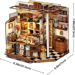 Henry's Schokoladenhaus ist ein wunderschönes Modell eines Ladens voller Gourmet-Desserts im Retro-Stil. Dieses 3D-Puzzle ist ideal für jeden, der Schokolade und handgemachte Köstlichkeiten liebt. Das Zusammenbauen fördert die Feinmotorik, das räumliche Denken und die Geduld. Dank präzise geschnittener Teile lässt sich alles einfach ohne Kleber oder Werkzeuge zusammenbauen.