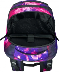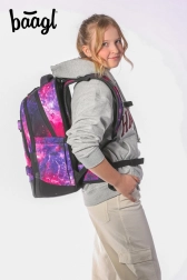 Der BAAGL Schulrucksack Skate max Galaxy ist ideal für Schüler und Studenten mit einer Körpergröße zwischen 155 und 185 cm. Das Rückensystem des Rucksacks ist verstellbar und kann auf vier verschiedene Größen angepasst werden. Dank des recycelten, wasserdichten Materialtextils und der reflektierenden Elemente ist der Rucksack sehr sicher und langlebig.