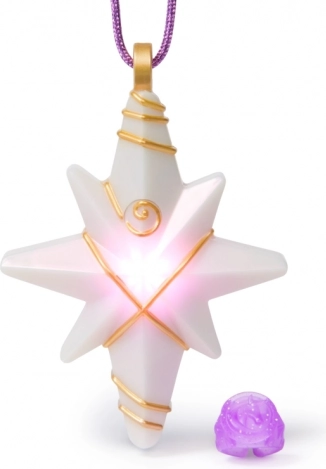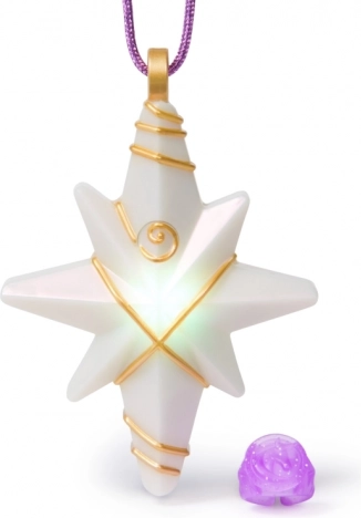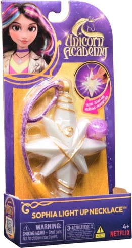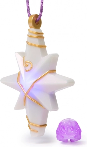 Der sternförmige Anhänger mit perlmuttfarbenem Körper und goldenen Details leuchtet nach Knopfdruck in mehreren Farben sowie in Weiß – genau wie bei Sophia in Unicorn Academy.