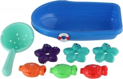 Das Set enthält mehrere niedliche Formen von Fischen und Seesternen in leuchtenden Farben. Kinder können sie mit dem Sieb fangen oder frei treiben lassen.