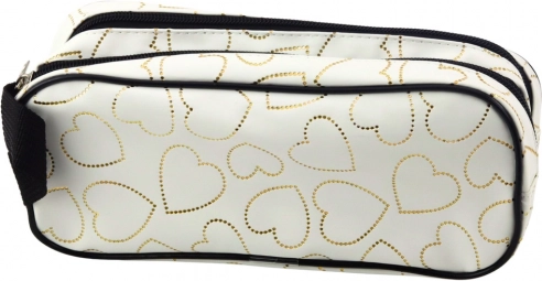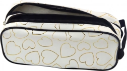 Dieses weiße Mäppchen mit goldenen Herzen bietet hervorragende Organisation dank zwei separater Abteile zum Verstauen Ihrer Schreibutensilien. Es bietet Platz nicht nur für Stifte und Bleistifte, sondern auch für Lineale, Radiergummis und Textmarker. Separate Kammern sorgen für bessere Übersichtlichkeit und Ordnung.