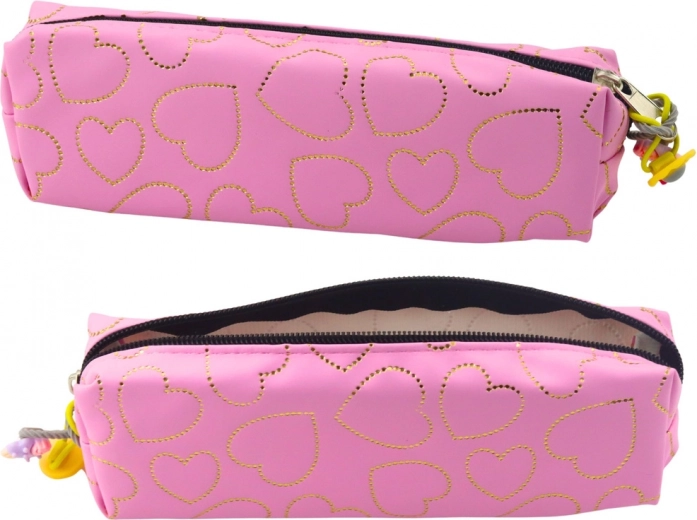 Rosa Federmäppchen mit goldenen Herzen ist ein stilvolles und praktisches Accessoire für jeden Studenten oder Profi. Dieses Federmäppchen zeichnet sich durch seine kompakte Größe und leichte Bauweise aus, wodurch es eine hervorragende Wahl für die Aufbewahrung der wichtigsten Schreibutensilien wie Kugelschreiber, Bleistifte, Filzstifte oder Textmarker ist. Seine Abmessungen ermöglichen ein einfaches Tragen in einem Rucksack oder einer Arbeitstasche.