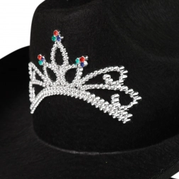 Der elegante schwarze Cowboyhut ist das perfekte Accessoire für alle Liebhaberinnen des Westernstils. Er ist mit einer auffälligen silbernen Krone verziert, die dem Hut Attraktivität verleiht. Die Höhe des Hutes beträgt 14 cm, was einen bequemen Sitz gewährleistet. Der Hut ist für Erwachsene vorgesehen. Mit diesem Hut stehen Sie immer im Mittelpunkt, egal ob auf einem Karneval, einer Themenparty oder einem Konzert.