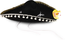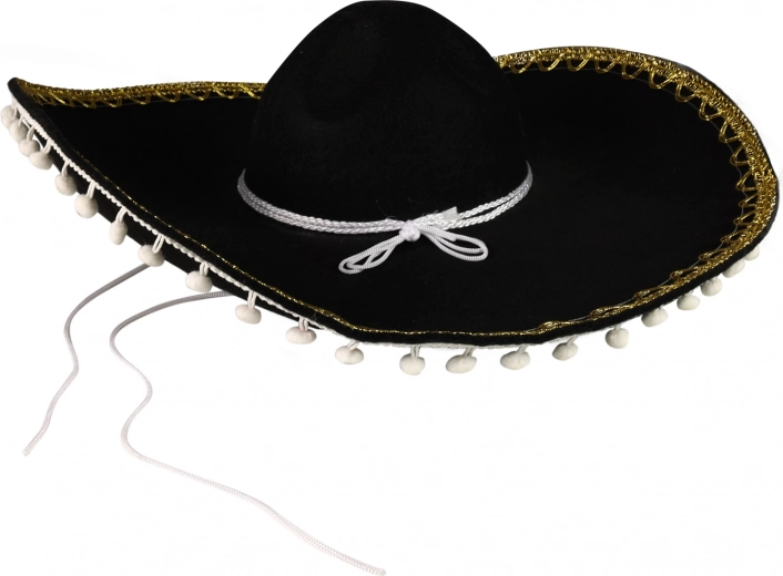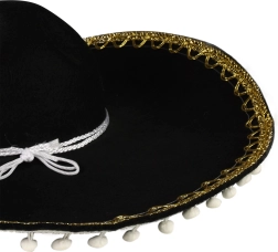 Dieses schwarze Sombrero ist ideal für jeden, der auf Karnevals- oder Themenpartys auffallen möchte. Mit weißen Bommeln und Kordel bietet es nicht nur Stil, sondern auch Komfort beim Tragen. Hervorragend geeignet als Accessoire für: