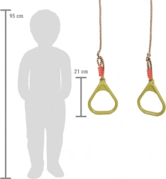 Maximieren Sie den Spaß Ihrer Kinder mit Gymnastikringe. Diese Ringe sind für kleinere Kinder geeignet, sodass sie sicher die mutigsten akrobatischen Tricks trainieren können. Die Seile sind leicht höhenverstellbar und haben an den Enden Metallringe für einfaches Aufhängen.