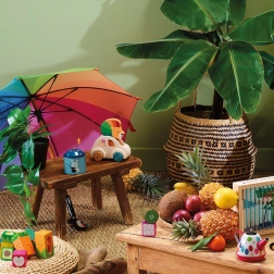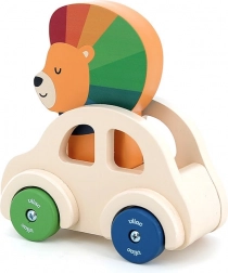 Dieses entzückende Holzauto ist das ideale Spielzeug für kleine Kinder. In der Mitte sitzt ein kleiner Löwe mit bunter Mähne und auf seinem Kopf ist eine Hupe angebracht, die bei Druck ertönt. Dies fördert die Interaktion und weckt zugleich das Interesse am Entdecken.