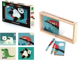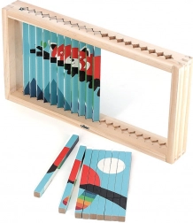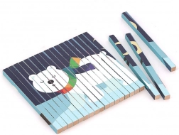 Dieses clever gestaltete Puzzle ist perfekt für neugierige Kinder, die gerne durch Spielen lernen. Es enthält hölzerne Stäbchen, die von vier Seiten bedruckt sind und verschiedene Bilder wie Panda, Eisbär, Krokodil und andere zeigen. Feinmotorik und logisches Denken der Kinder werden bei jeder Bewegung der Stäbchen gefördert.