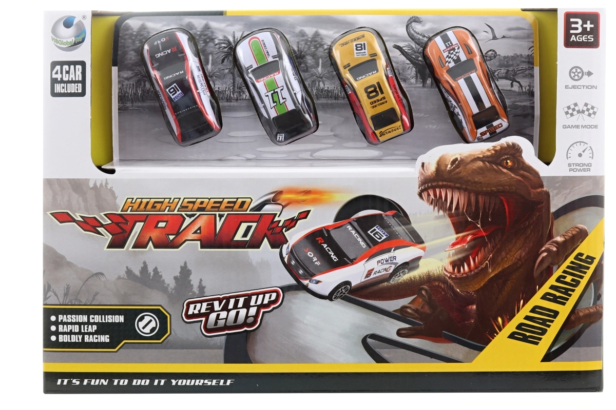 Erleben Sie endlosen Spaß mit dieser Abschussbahn mit Dino! Das Kinderset, das eine Bahn und 4 Autos beinhaltet, ist ideal für kleine Autoliebhaber. Hergestellt aus robustem Kunststoff, der eine lange Lebensdauer des Spielzeugs sicherstellt.