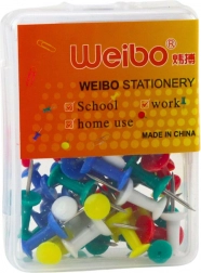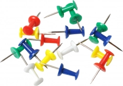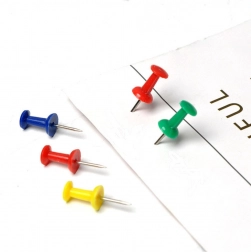 Bunte Reißzwecken für das Büro oder die Schule sind ein praktisches Zubehör für Kork- und Textiltafeln, die das Anheften von Notizen, Fotos, Plänen oder Ankündigungen ermöglichen. Intensive Farben helfen, Informationen visuell zu kennzeichnen und die starke Metallspitze sorgt für sicheren Halt.