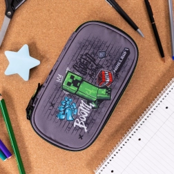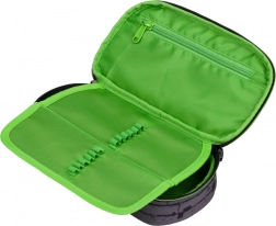 Das kompakte Schulmäppchen Baagl, inspiriert vom Spiel Minecraft, bietet ein geräumiges Hauptfach und einen doppelten Klappflügel für Schreibutensilien und Kleinigkeiten.