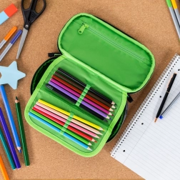 Das Mäppchen ist mit einer Innenstasche und einem Stundenplanfenster ausgestattet, was die Organisation der Schulutensilien erleichtert. Zu seinen Hauptmerkmalen gehören: