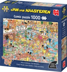 Erleben Sie die Freude am Zusammensetzen eines einzigartigen Puzzles vom renommierten Künstler Jan van Haasteren, das voller Humor und Farben ist. Seine Werke sind bekannt für ihren charakteristischen Stil, in dem Sie unerwartete Details wie Haiflossen oder witzige Figuren finden.