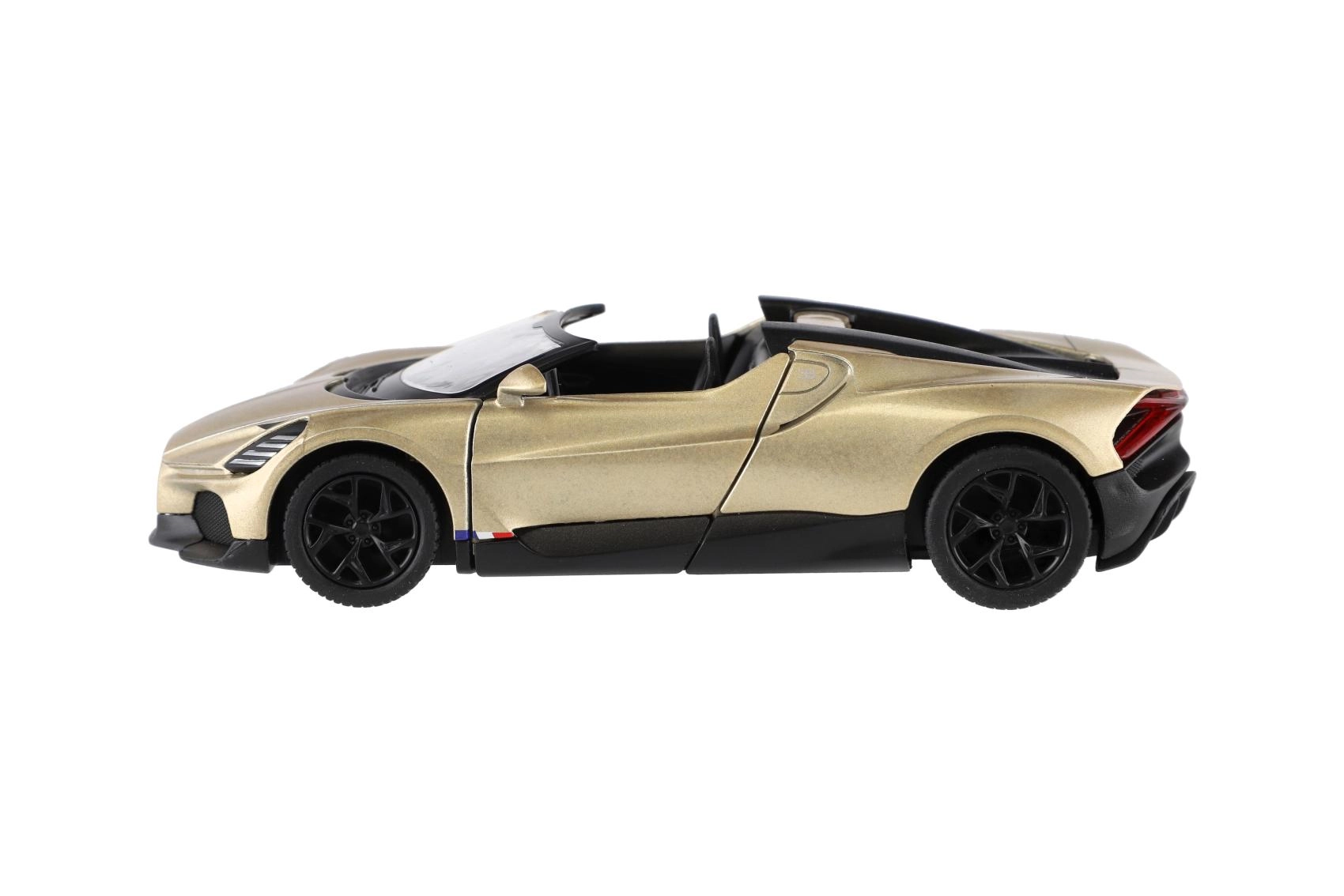 Dieses detailreich gestaltete BUGATTI MISTRAL Modell bringt Luxus und Geschwindigkeit direkt in Ihre Vitrine oder ins Kinderzimmer. Die Metallkarosserie mit Kunststoffelementen sorgt für Robustheit und einen originalgetreuen Look, während der Rückziehantrieb für spaßige, dynamische Fahrten sorgt.