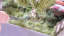 Leicht mit handelsüblichem Landschaftsbaukleber auf jede Oberfläche aufzukleben. Für die Integration in größere Grasflächen können sie direkt auf Untergründen platziert werden, die mit Graskleber bestrichen sind. Durch anschließendes Bestreuen entsteht eine grüne Fläche, die sehr natürlich wirkt.