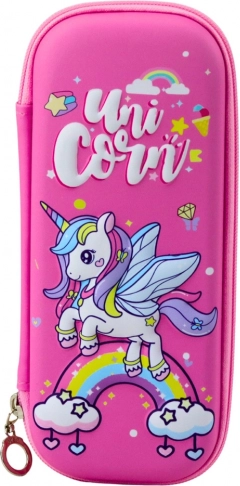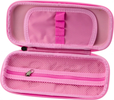Das Innere des Etuis ist mit Fokus auf maximalen Benutzerkomfort gestaltet – es enthält elastische Halterungen für Stifte und Bleistifte sowie ein Mesh-Fach mit Reißverschluss, das sich ideal zur Aufbewahrung von Kleinigkeiten, Radiergummis und Anspitzern eignet. Das gesamte Etui ist in leuchtendem Rosa mit einem Druck eines niedlichen Einhorns gehalten, das die Herzen jedes Kindes erobert.