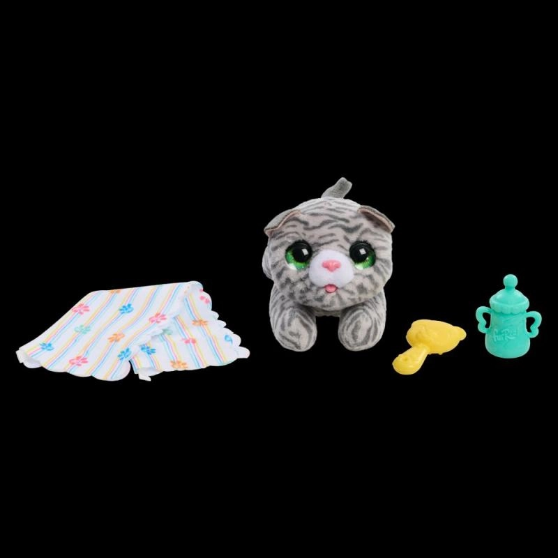 FurReal Neugeborenes Plüschkätzchen ist ein bezauberndes interaktives Tierchen, das Sie lieben werden! Es macht Freude, sich darum zu kümmern: Füttern Sie es mit der Flasche, beruhigen Sie es mit dem Schnuller oder schaukeln Sie es in Ihren Armen.