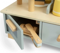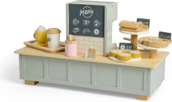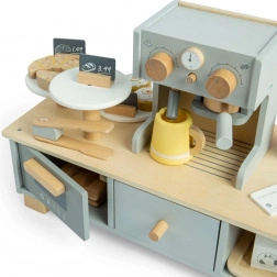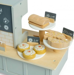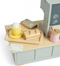 Kinder können die hölzerne Bankkarte und das Terminal für Zahlungen wie in einem echten Kaffeehaus verwenden. Dieses Set bietet stundenlangen Spaß und fördert die Sprach- und sozialen Fähigkeiten.