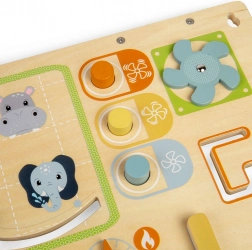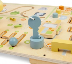 Dieses Aktivitätenbrett ist voller verschiedener Aktivitäten wie Knöpfe, Labyrinthe, Zahnräder sowie Dreh- und Schiebeflächen. Es unterstützt die Feinmotorik und Auge-Hand-Koordination, entwickelt Problemlösungsfähigkeiten und das Verständnis von Ursache-Wirkungs-Zusammenhängen. Kinder lernen durch Spiel und Spaß!