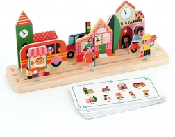 Das Set enthält eine Holzspielfläche, 9 Holzstücke und 60 Spielkarten. Ideal für das Spielen allein oder mit Eltern, geeignet für Kinder ab 3 Jahren. Hergestellt unter dem Originaldesign von Ingela P. Arrhenius.
