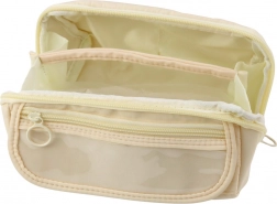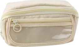 Cremfarbener ausziehbarer Stiftetui mit durchsichtigem Fach