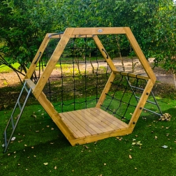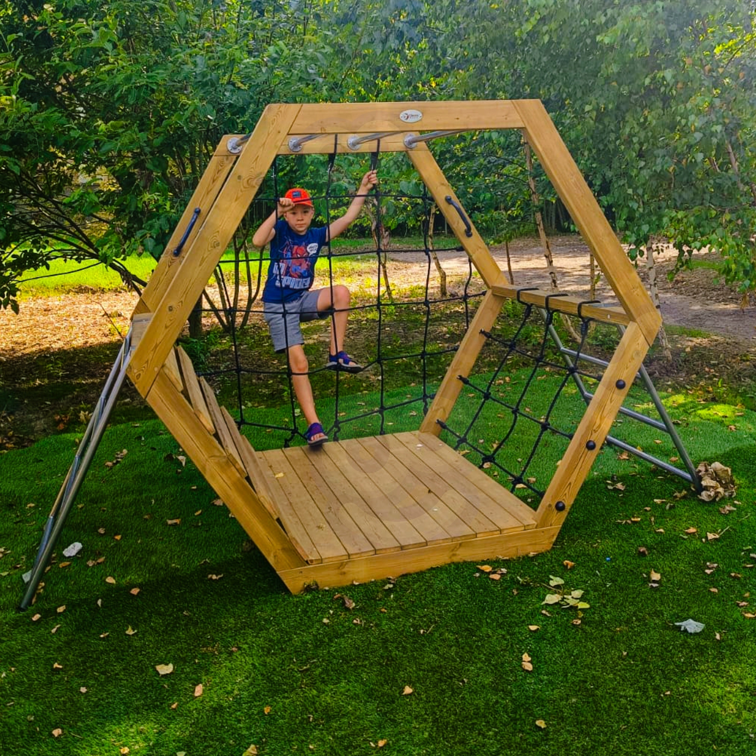 Die sechseckige Form erhöht die Stabilität und bietet von jeder Seite mehr Routen zum Klettern, Hängen und Durchkriechen.