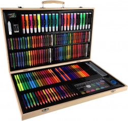 Entdecken Sie ein vielseitiges Kreativset zum Malen und Zeichnen mit 180 Teilen, übersichtlich verstaut in einem eleganten Holzkoffer mit Verschluss. Perfekt für kreatives Arbeiten zu Hause, Schulprojekte und als mobiles Kunstset für unterwegs.