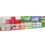 Fünf kompakte Becher in verschiedenen Farben fördern die Fantasie sowie die sensorische Wahrnehmung und die Feinmotorik von Kindern.