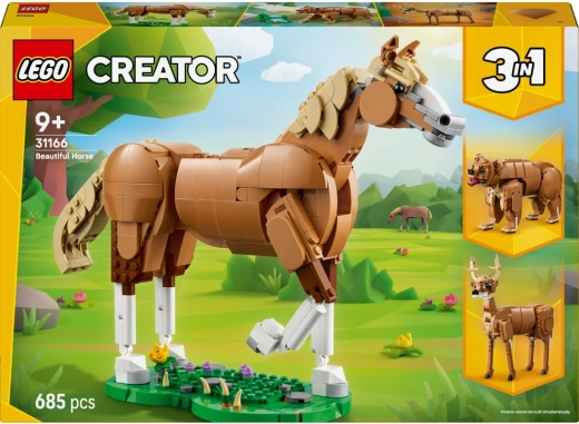 Entdecke grenzenlose Baumöglichkeiten mit dem Set Creator 3-in-1: Wunderschönes Pferd. Aus einem Steinset baust du eine bewegliche Pferdefigur mit Ständer, die in drei verschiedenen Positionen aufgestellt werden kann: auf drei oder vier Beinen oder majestätisch aufgerichtet auf den Hinterbeinen. Alle Modelle überzeugen durch detailreiche Gestaltung und eignen sich sowohl zum Spielen als auch zum Ausstellen im Kinderzimmer.