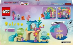 Das Bauen ist dank Starterstein und separaten Beuteln mit Modellen einfach und macht Spaß. Kinder entdecken eine Abfahrt/Rutsche, eine große Blase zum „Schwimmen“ der Figuren und ein bewegliches Korallenriff, das eine Schatzkammer enthüllt. Viele Details wie Muscheln, Pflanzen und Meeresbewohner sorgen für stundenlangen Spielspaß.