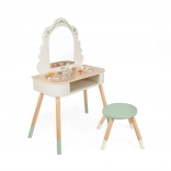 Der Holztoilettentisch von Classic World ist der ideale Ort für kleine Prinzessinnen, um mit Make-up und Ankleiden zu experimentieren. Er ist für Kinder ab 3 Jahren geeignet und aus hochwertigem Holz gefertigt, was seine Haltbarkeit und Sicherheit garantiert. Pastellfarbige Palette bringt Sanftheit und Eleganz in jedes Kinderzimmer.