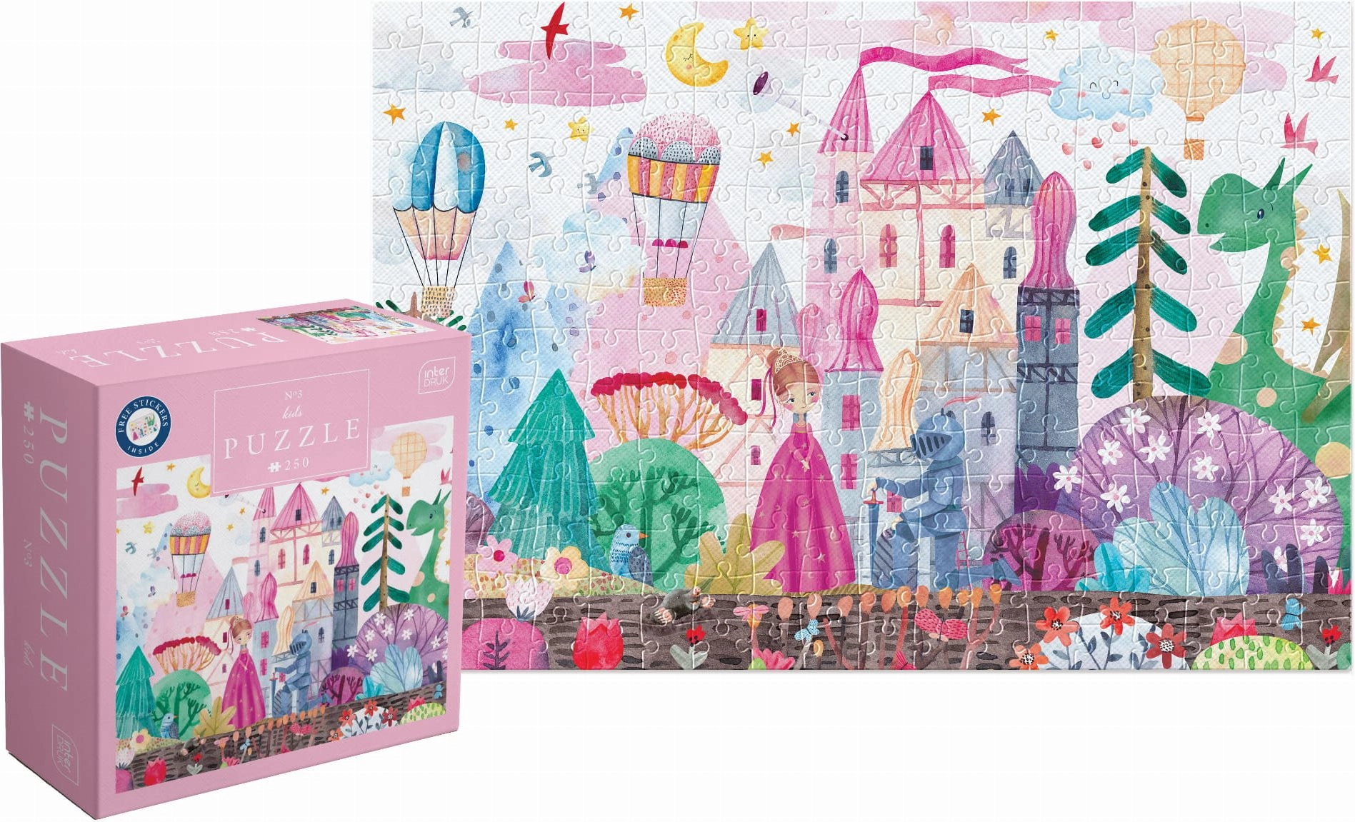 Genießen Sie viel Spaß mit dem Schloss-Puzzle mit 250 Teilen, das auch ein Blatt mit Aufklebern für noch mehr Kreativität enthält!