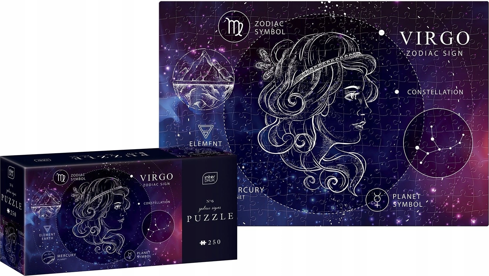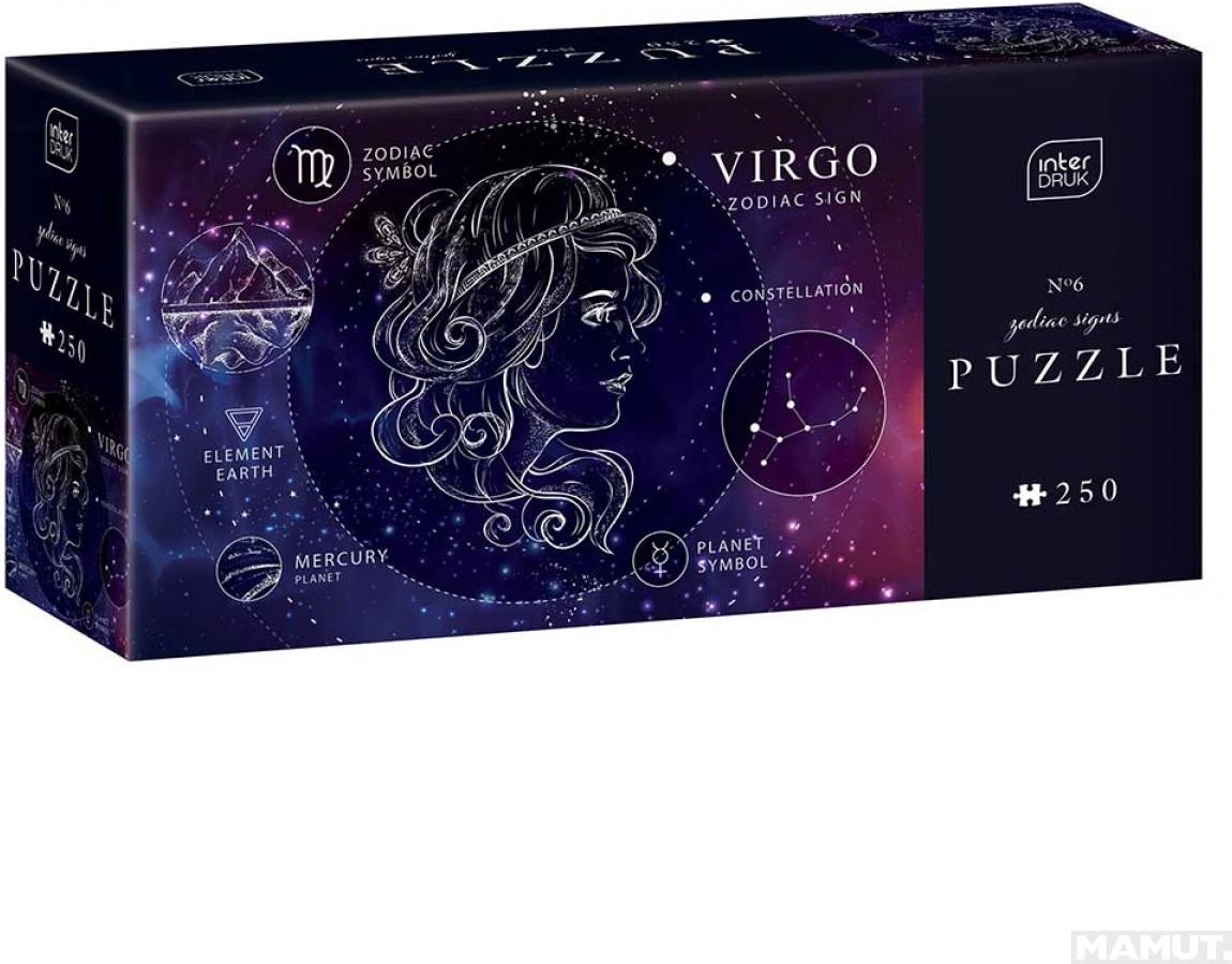 Entdecken Sie die Schönheit und Detailgenauigkeit mit Interdrukt Puzzle Tierkreiszeichen: Jungfrau. Dieses Puzzle entführt Sie in die Welt der Astrologie und ermöglicht es Ihnen, das Motiv der Jungfrau in seiner ganzen Pracht zu bewundern: