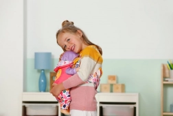 Der leichte und robuste Tragegurt hält die Puppe sicher auf der Brust, sodass Kinder überall mit freien Händen spielen und helfen können.