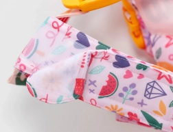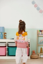 Ein Set bunter, leicht anklippbarer Deko-Elemente ermöglicht es Kindern, das Design des Tragegurts je nach Stimmung zu verändern. Inklusive Box zur Aufbewahrung.