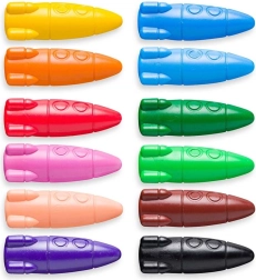 Machen Sie Ihren Kindern Freude mit dem Raketen-Wachsmalstifset, das 12 einzigartige Farben wie lila, schwarz, rot, blau, orange und grün enthält. Diese Wachsmalstifte sind speziell für kleine Hände konzipiert, was das Greifen und Benutzen erleichtert.