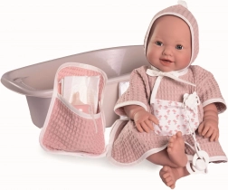 Die Puppe kommt mit einer nachfüllbaren Flasche, zwei Einwegwindeln und einer Badewanne für mehr Spielspaß. Verpackt in einer Geschenkbox und empfohlen für Kinder ab 3 Jahren.