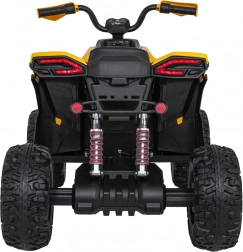 Erleben Sie Abenteuer draußen und im Garten mit dem robusten Kinder-Quad Fast Wheel. Dank vier 35-W-Motoren und einer hohen Bodenfreiheit von 21 cm meistert es auch unebenes Gelände. EVA-Schaumräder dämpfen Vibrationen und bieten hervorragende Traktion, während die hinten einstellbaren Stoßdämpfer den Fahrkomfort erhöhen.